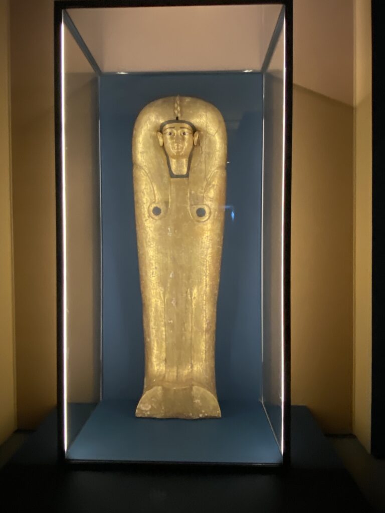 La mostra lo chiarisce fin dall’inizio: per gli Egizi, vita e morte non sono opposti, ma stadi consecutivi di uno stesso ciclo. La morte si configura come una soglia, e ciò che davvero segna la scomparsa definitiva è l’oblio. Si muore, in senso assoluto, solo quando il nome non viene più pronunciato, quando l’immagine si dissolve, quando il corpo non è più riconoscibile.